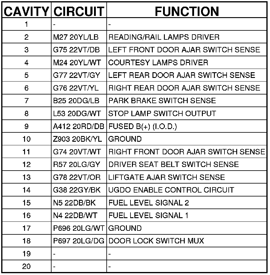 Cluster C2 (Instrument Panel) 20 Way
