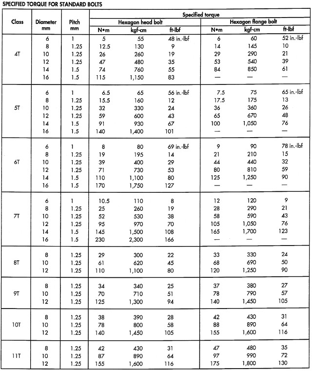 Individual Torque Charts appear within many of the Groups. Refer to the Standard Torque Specifications chart for torque references not listed in the individual torque charts.