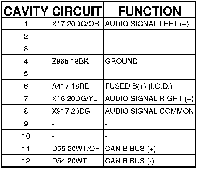Connector C1 - (SDARS JUMPER) 12 WAY