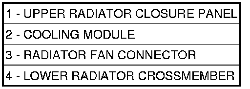 4. Install radiator fan/shroud assembly. Hand start fasteners.