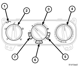 - a push-button control to turn the A/C system on and off (7).