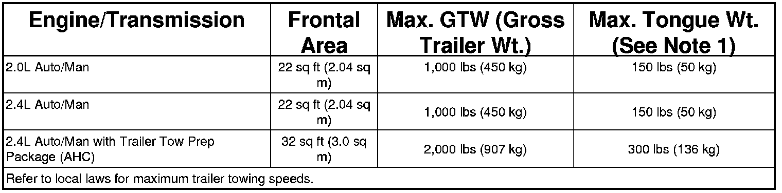 SPECIFICATIONS - TOWING, Trailer - NAFTA