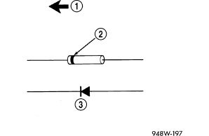 Remove the diode from the harness, pay attention to the current flow direction (1) (2) (3).