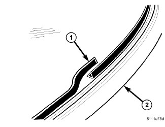 4. Install a new rubber seal (2) along the top of the windshield (1).