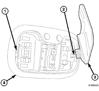 NOTE: When installing the lens (5), make sure that the tab on the lens (4) is inserted on the right side of the courtesy/reading lamp unit first.