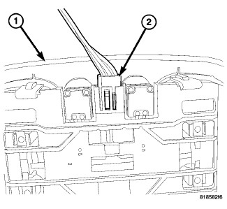 1. Connect the courtesy/reading lamp (1) electrical connector (2).