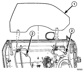 2. Install the door glass fasteners (2). Tighten to 10 Nm (89 in. lbs.).