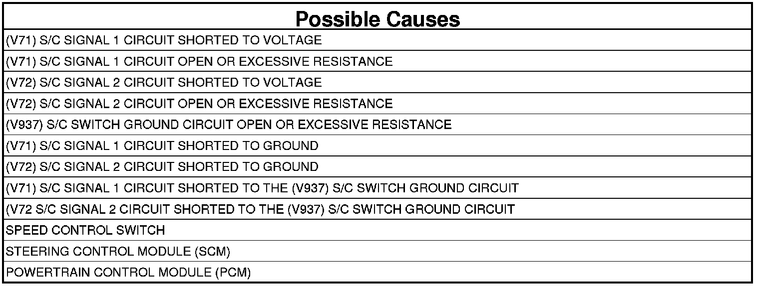 - Repair the short between the (V72) S/C Signal 2 circuit and the (V937) S/C Switch Ground circuit.