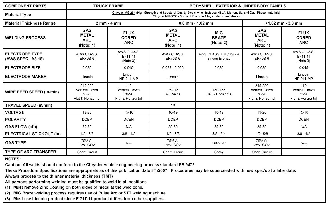 COLLISION AND FIELD REPAIR FUSION ARC WELDING PROCEDURE SPECIFICATIONS