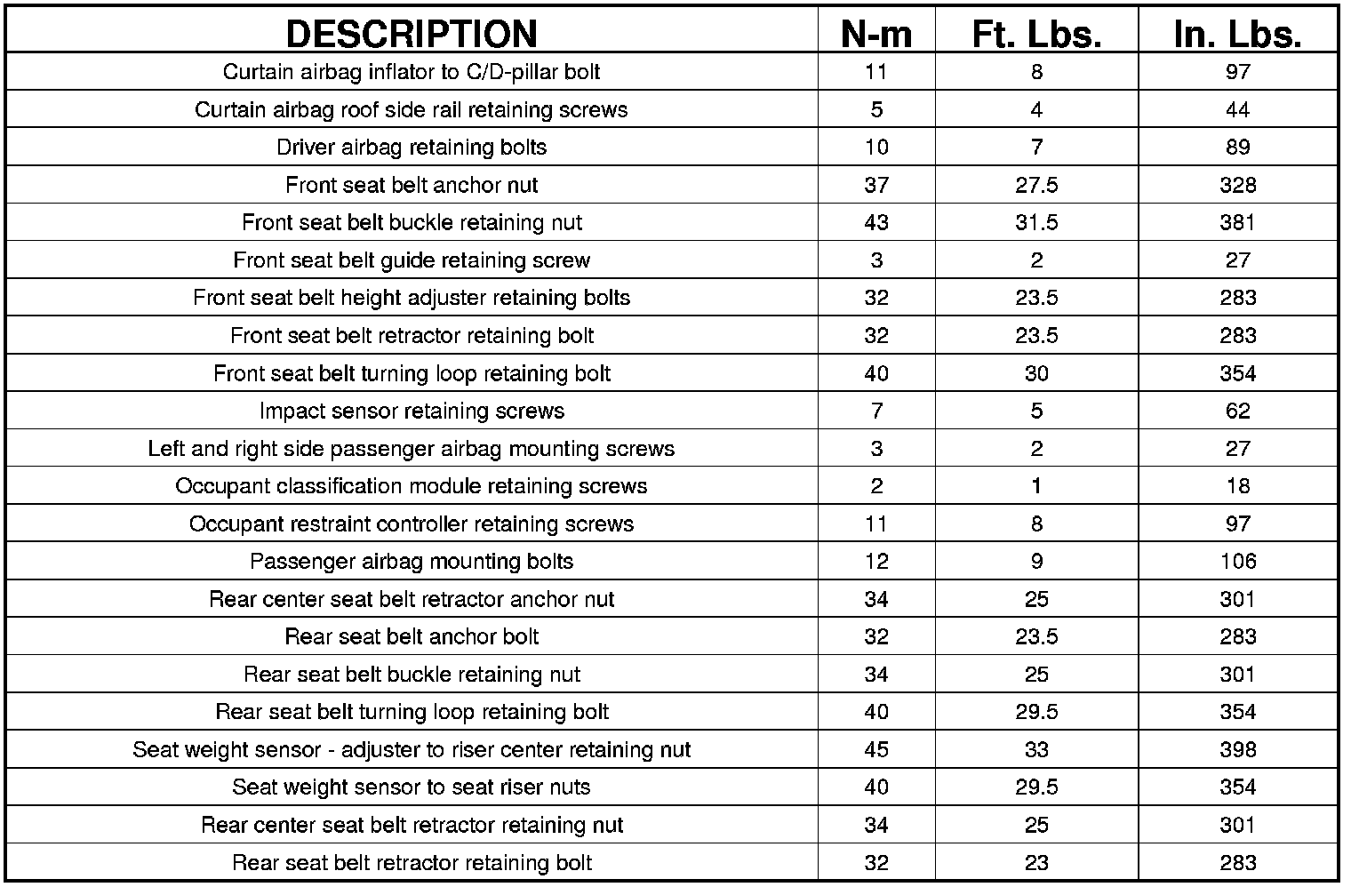 Restraints and Safety Systems: Specifications