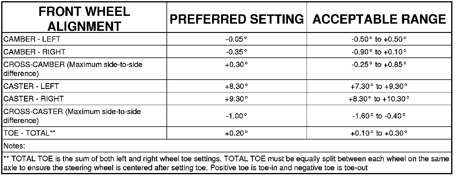 All wheel alignments are to be set at curb height