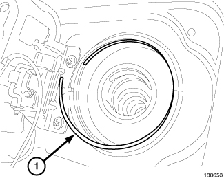 14. Start the metal wire retaining wire (1) in the groove on the inside of the filler tube rubber.