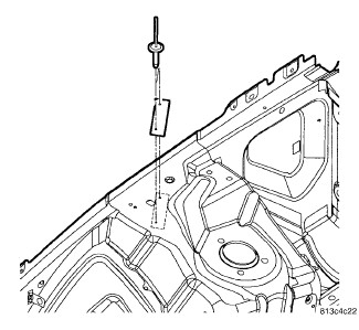 The Body Code Plate is located in the engine compartment on the front right side shock tower mounting front panel.