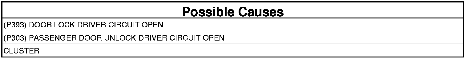 - Repair the (P303) Passenger Doors Unlock Driver circuit for an open.