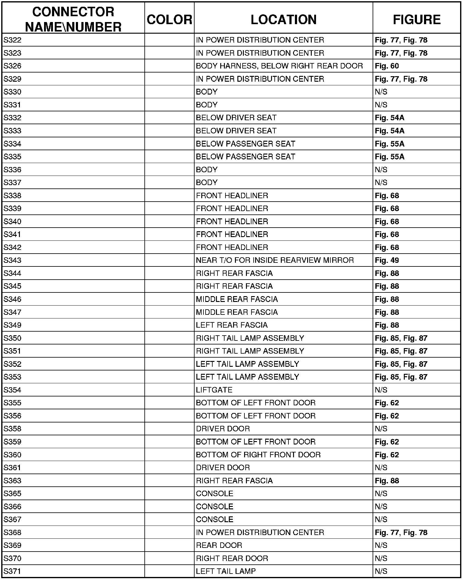 If a link on the index chart to a figure is not provided, that means that the splice and/or figure in question does NOT apply to the vehicle model selected.