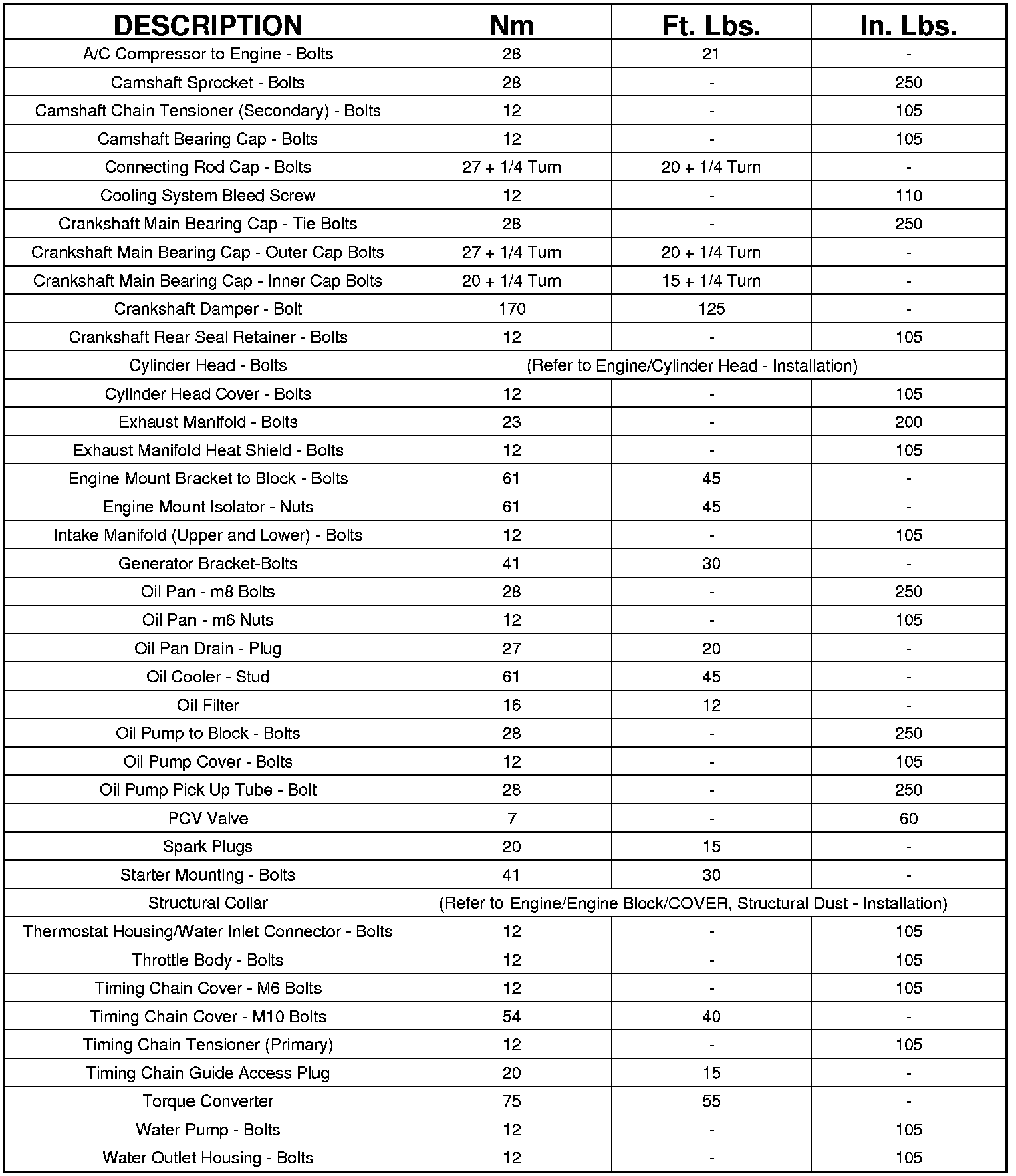 Flex Plate to Crankshaft 95 Nm (70 ft. lbs)