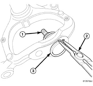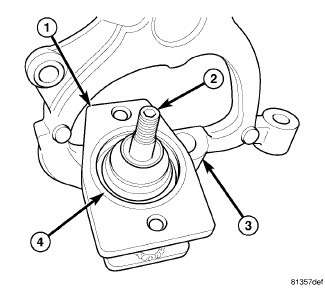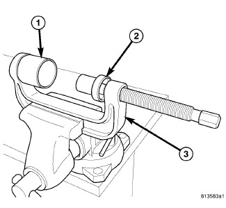 3. Using a pair of snap-ring pliers (2), remove snap-ring (3) from bottom of ball joint (1).