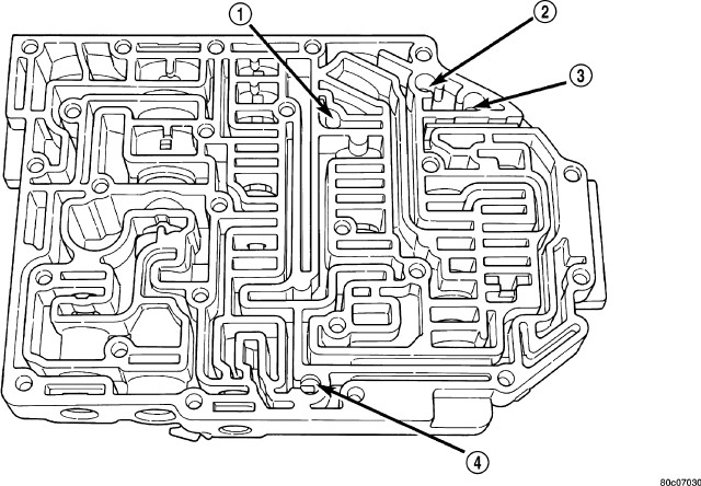 17. Remove valve body check balls (1-4). Note their location for assembly ease.