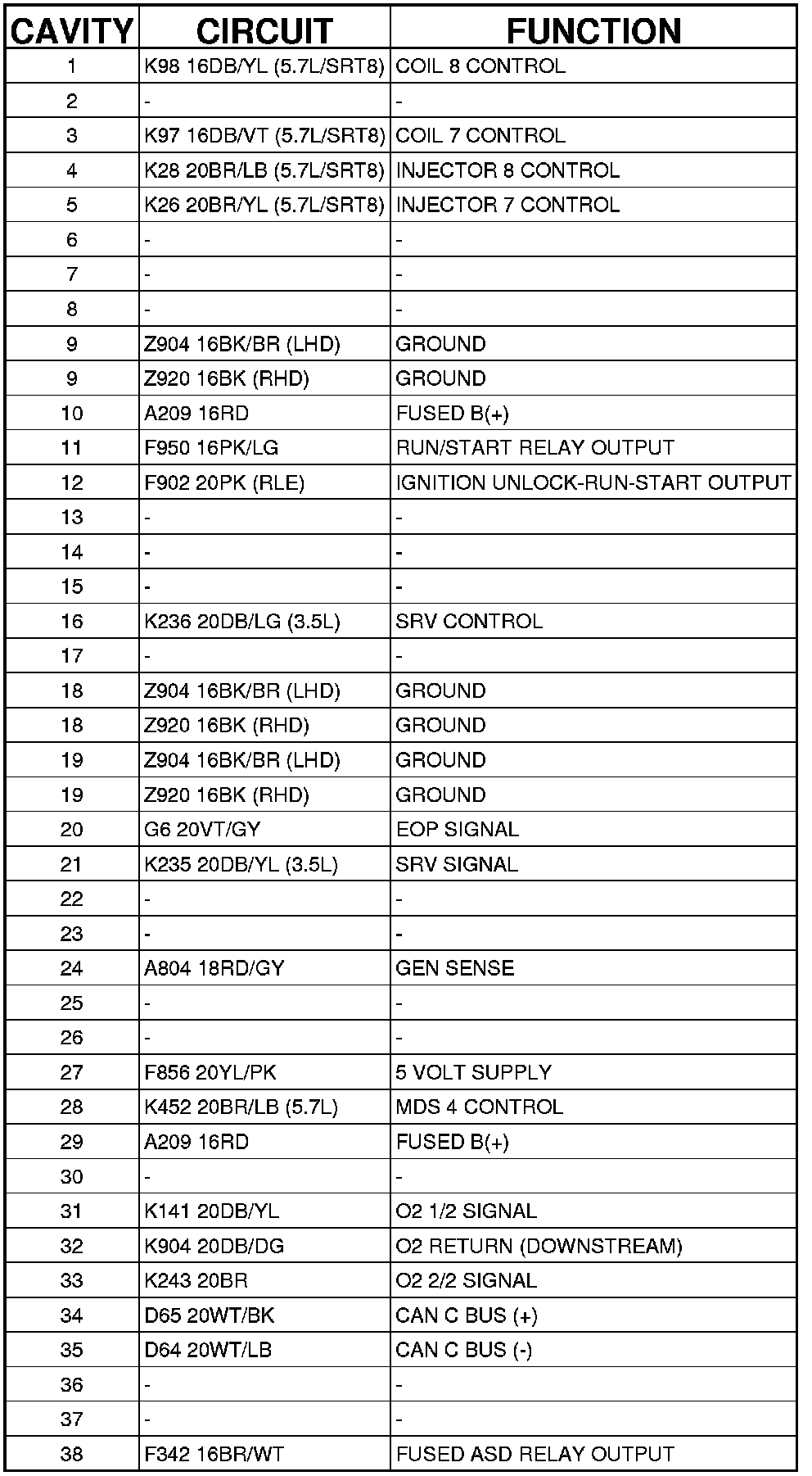 Powertrain Control Module C1 (Headlamp And Dash) 38 Way