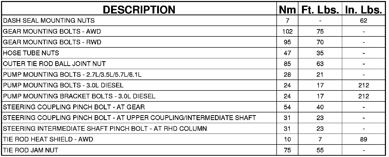 TORQUE SPECIFICATIONS