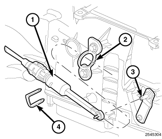 27. Install the gearshift cable retaining clip (4) (if equipped).