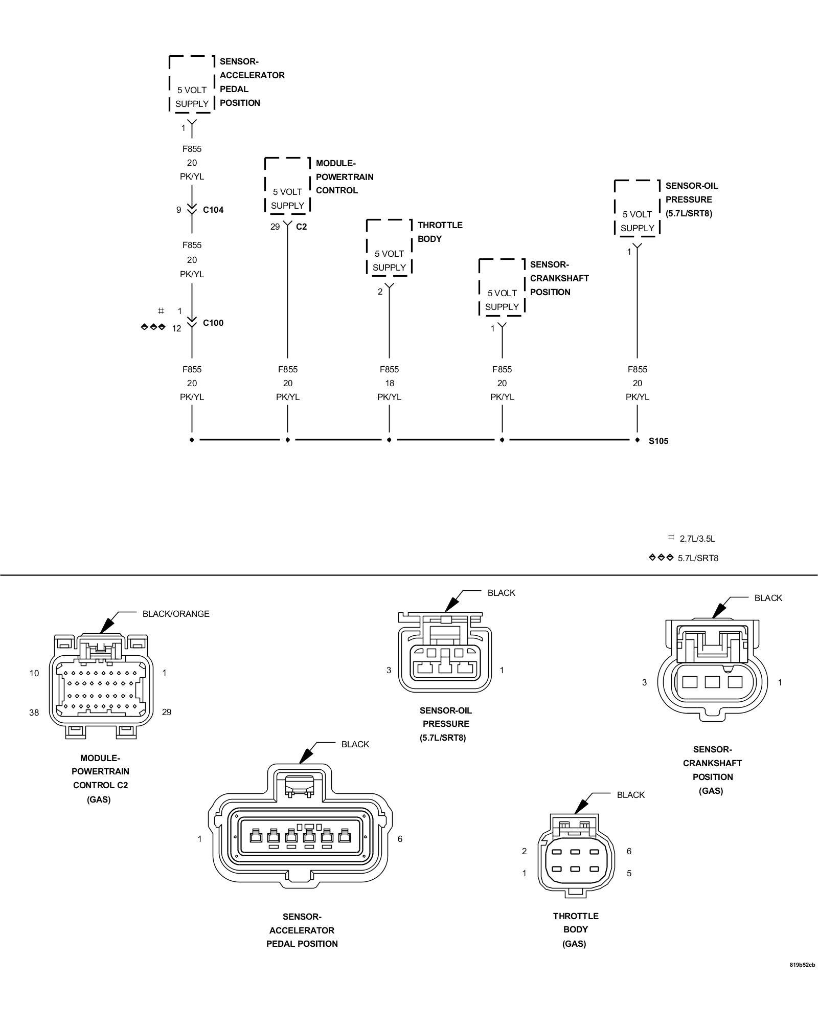 2. Connect the connector from each sensor or component that shares the (F855) 5-volt Supply except for the Crankshaft Position Sensor connector.