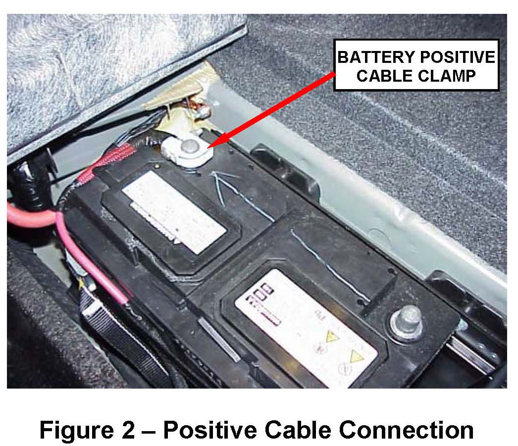 a. Disconnect the battery positive cable clamp from the battery terminal (Figure 2).