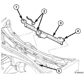 NOTE: When installing the motor onto the linkage assembly, do not remove the bellcrank. A timing issue will arise with the cam in the motor and a new motor will be needed. The wiper motor will be shipped from Mopar(R) with the bellcrank already installed.