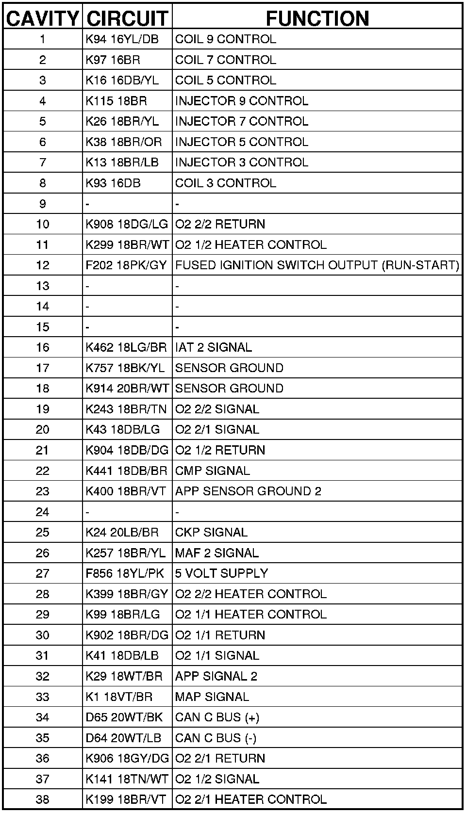 Connector C1 - (ENGINE) 38 WAY