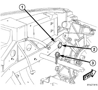 2. Disconnect the wire harness connector (3) from the A/C pressure transducer (2) located near the left frame rail.
