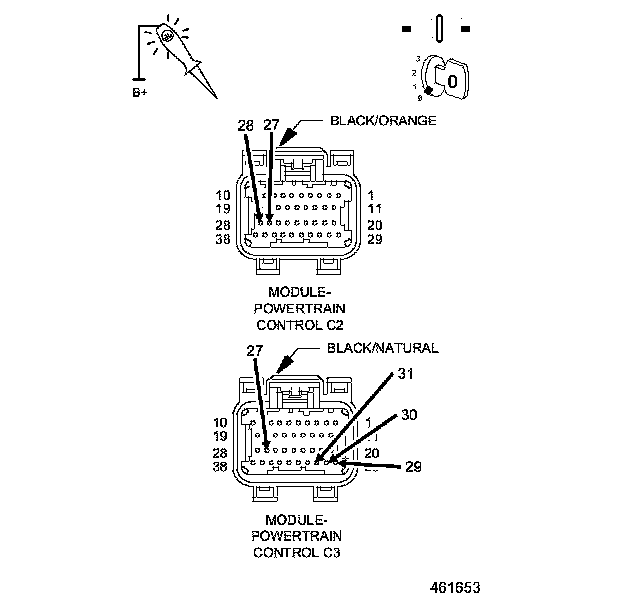 2. Using the wiring diagram/schematic as a guide, inspect the wiring and each connector at the PCM.