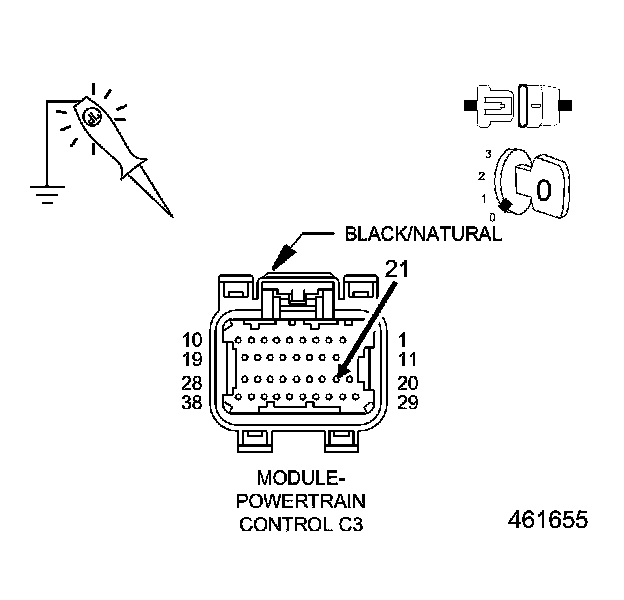2. Using a 12 volt test light connected to 12 volts, check the PCM ground circuits.