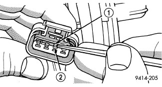CAUTION: Make sure the signal and ground wires are installed in the correct position. Make sure each electrical terminal (2) is locked into position by the locking finger (1).