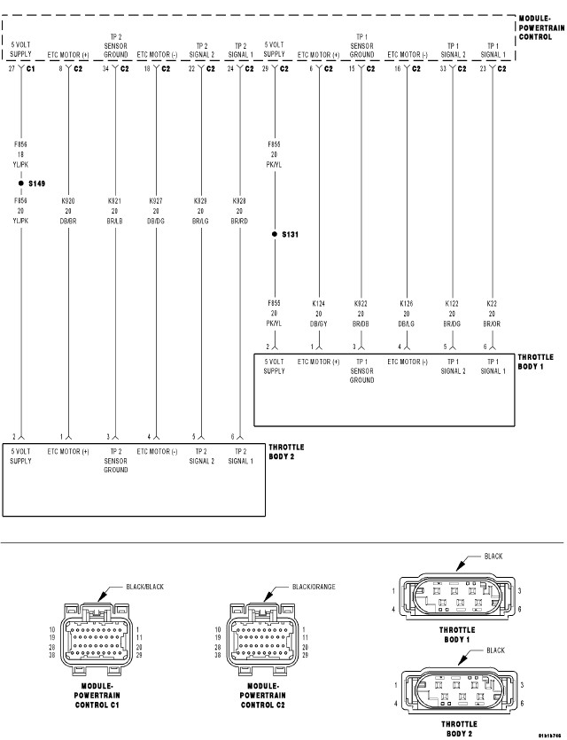 1. Using the wiring diagram/schematic as a guide, inspect the wiring and connectors between the throttle body and the PCM. Refer to the system schematic.