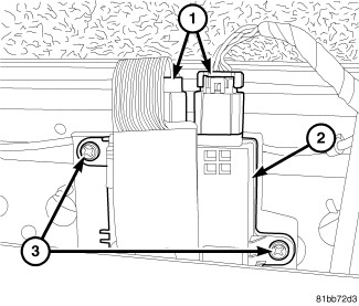 5. Disconnect the two electrical connectors (1) from the OCM (2).