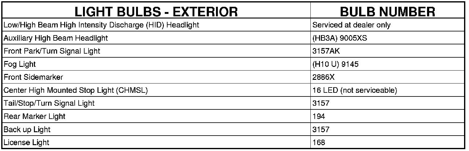REPLACEMENT LIGHT BULBS - EXTERIOR