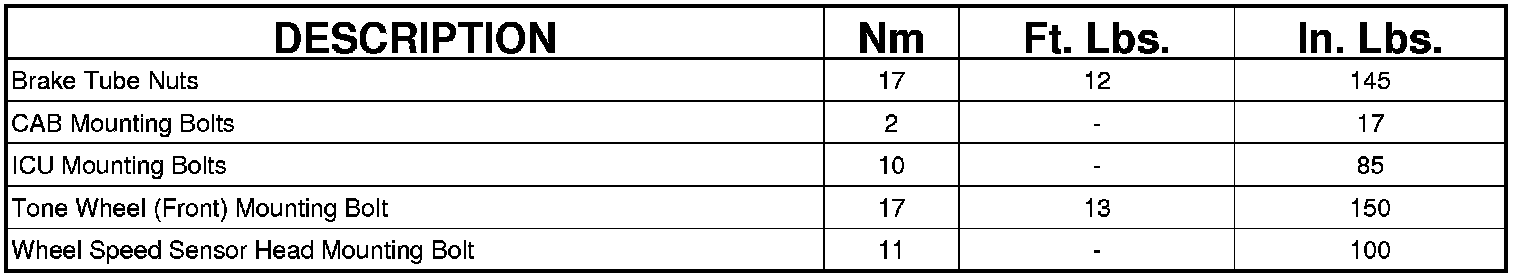 ANTILOCK BRAKE SYSTEM FASTENER TORQUE
