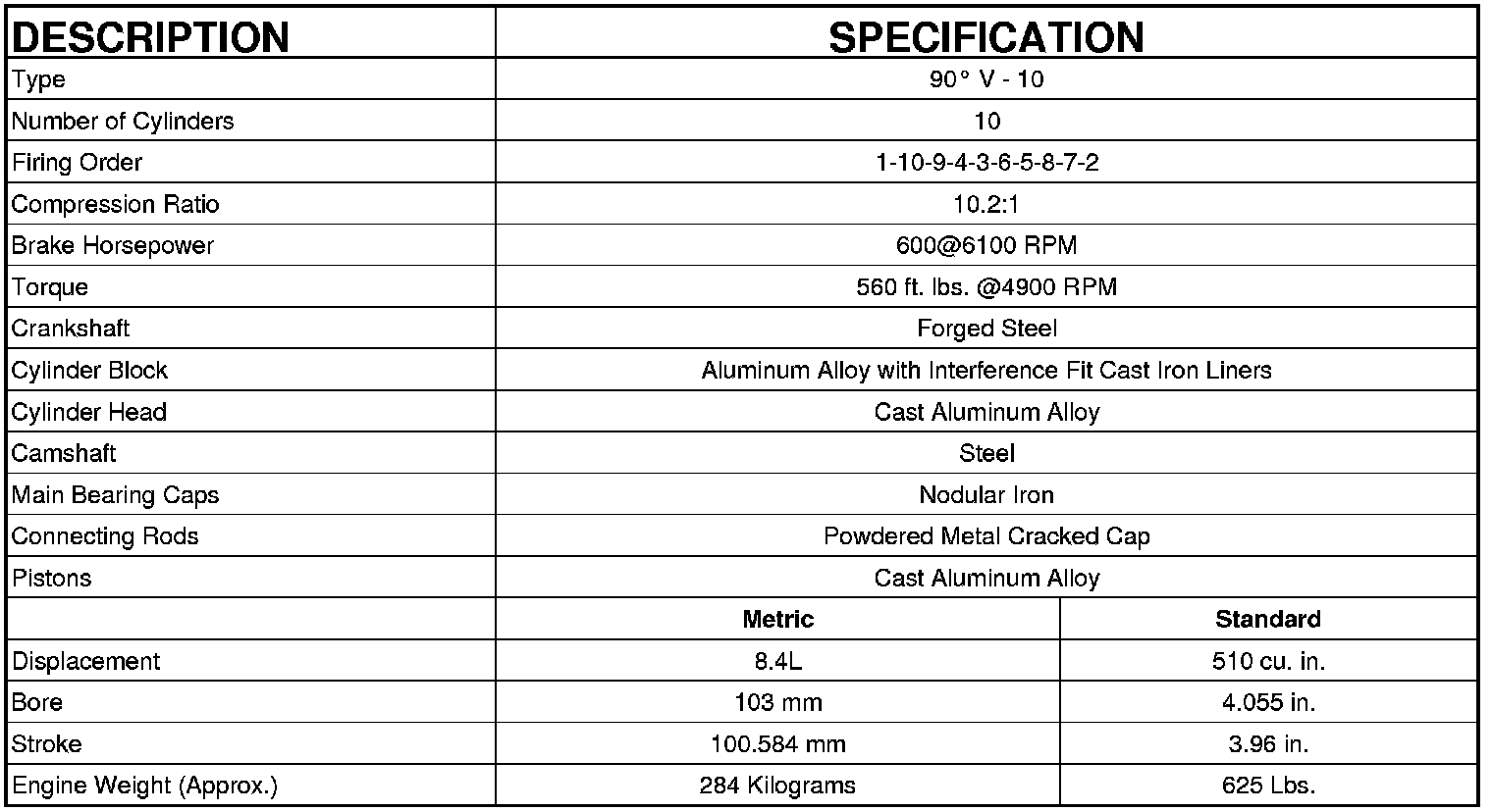 Engine Specifications