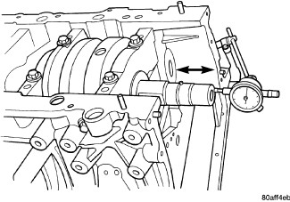 4. Move crankshaft all the way to the front and read the dial indicator. For crankshaft end play clearances Engine Specifications.
