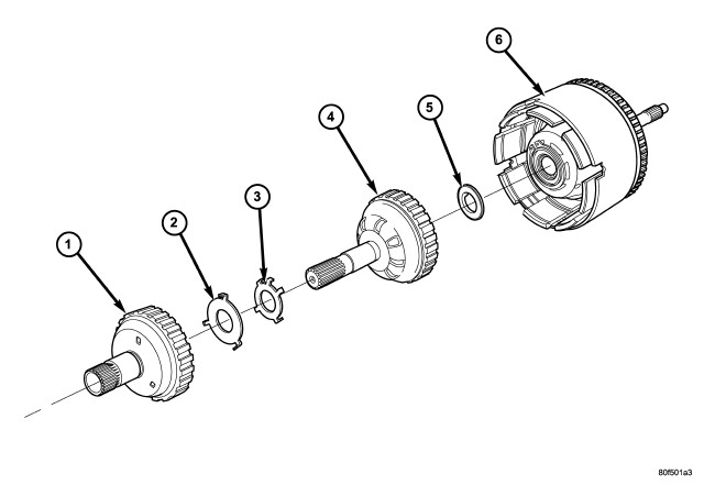 39. Pry up reverse reaction plate (4) to seat against snap ring (2).