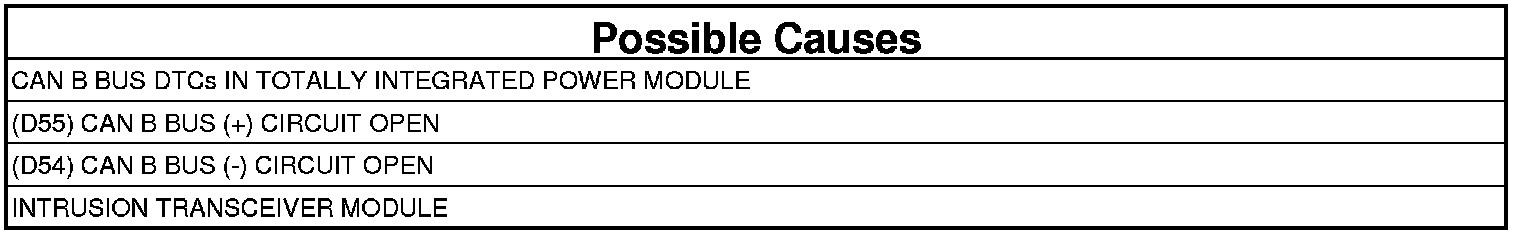 - Repair the (D55) CAN B Bus (+) circuit for an open.