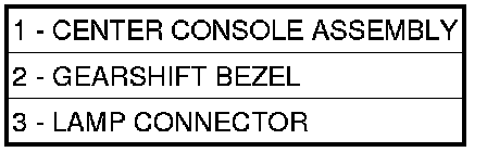 3. Remove the gearshift bezel (2) to gain access to the interlock cable adjuster lock.