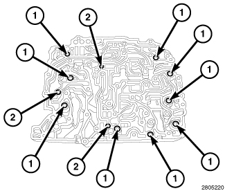 NOTE: The valve body contains some check balls that are pressed into a tapered bore (1). These check balls are not removable