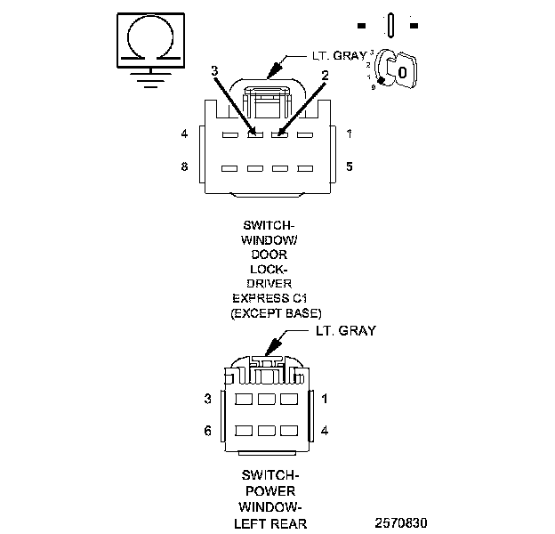 By studying the schematic above, you will notice that the window driver circuits both go to ground when the switches are in the neutral position. In the driver switch, when a switch is moved to lower or raise a window, the switch leaves the ground contact, and supplies 12 volts to the Master Window Switch Rear Up or Down circuit. Likewise in the rear switch, when a switch is moved it leaves the ground contact and supplies 12 volts (through the window lockout switch output circuit) to the Rear Window Driver Up or Down circuit.