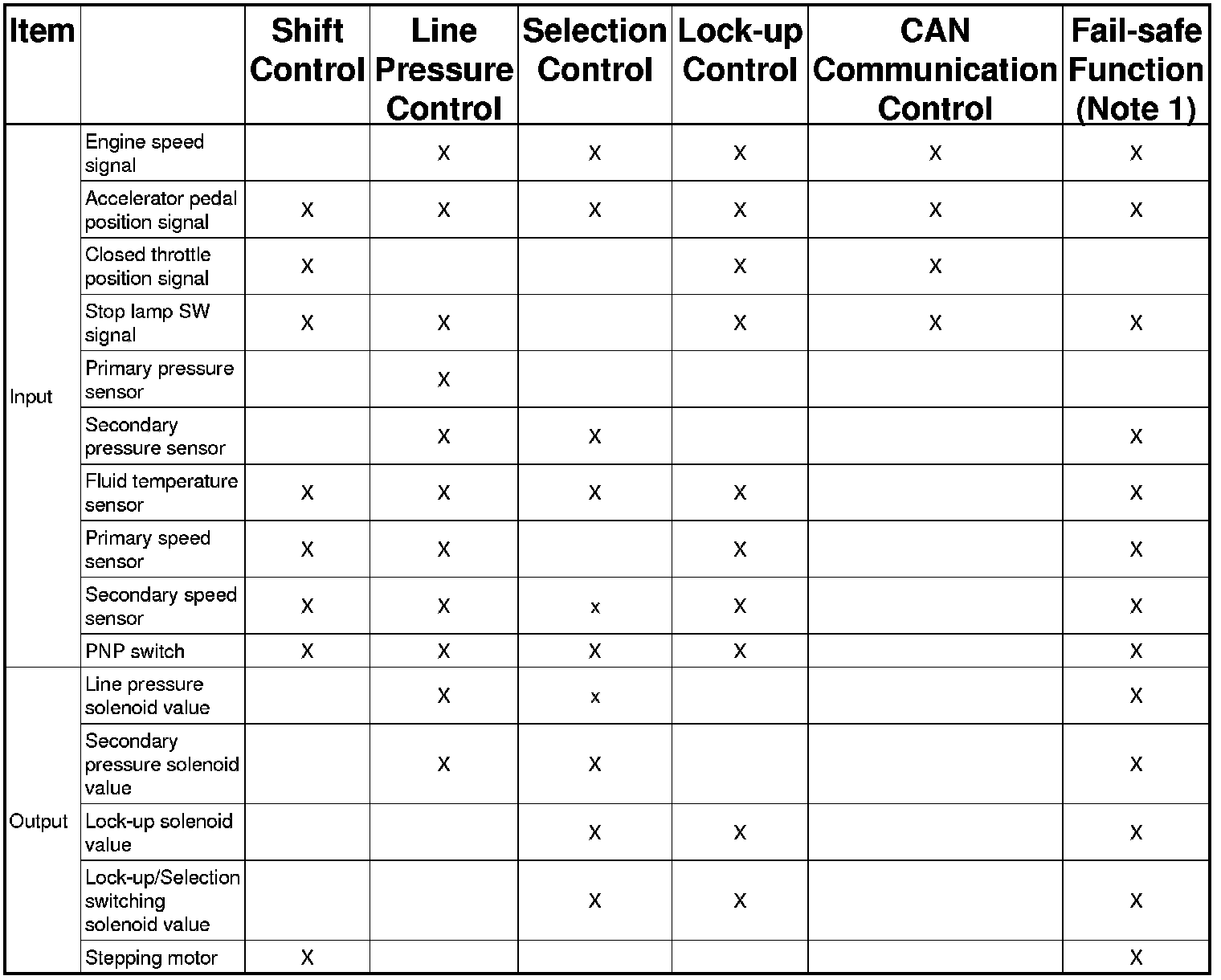 TCM sends information such as fast slowdown signals, lock-up signals, torque down request signals to ECM, while receiving information such as torque down permission/prohibition signals, lock-up permission/prohibition signals, throttle position from ECM.