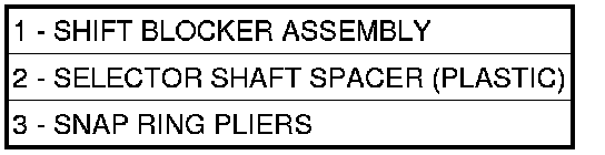 16. Pull the link shaft shift pin out of the slot in the blocker assembly. Turn selector shaft (2) up and out of the way.
