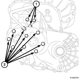 3. Remove transaxle case half bolts (1).