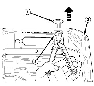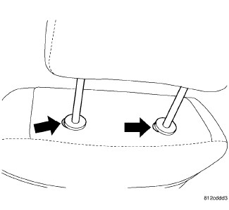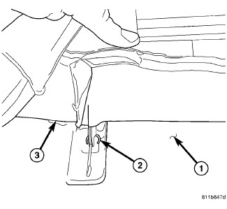 11. Squeeze the locking tab (3) and remove the headrest sleeves (1).