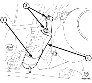 3. Remove the two heat shield nuts (2) and remove the heat shield (3).