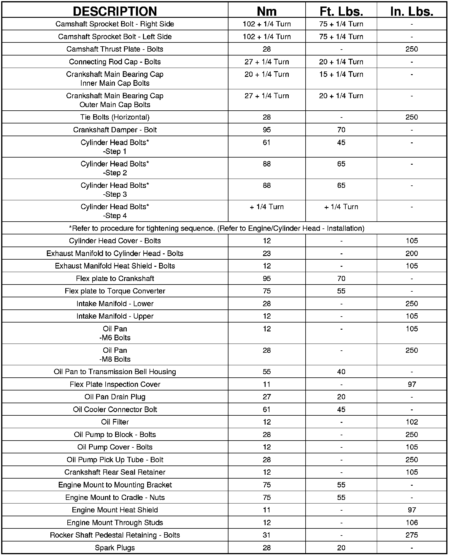 Engine Torque Specifications